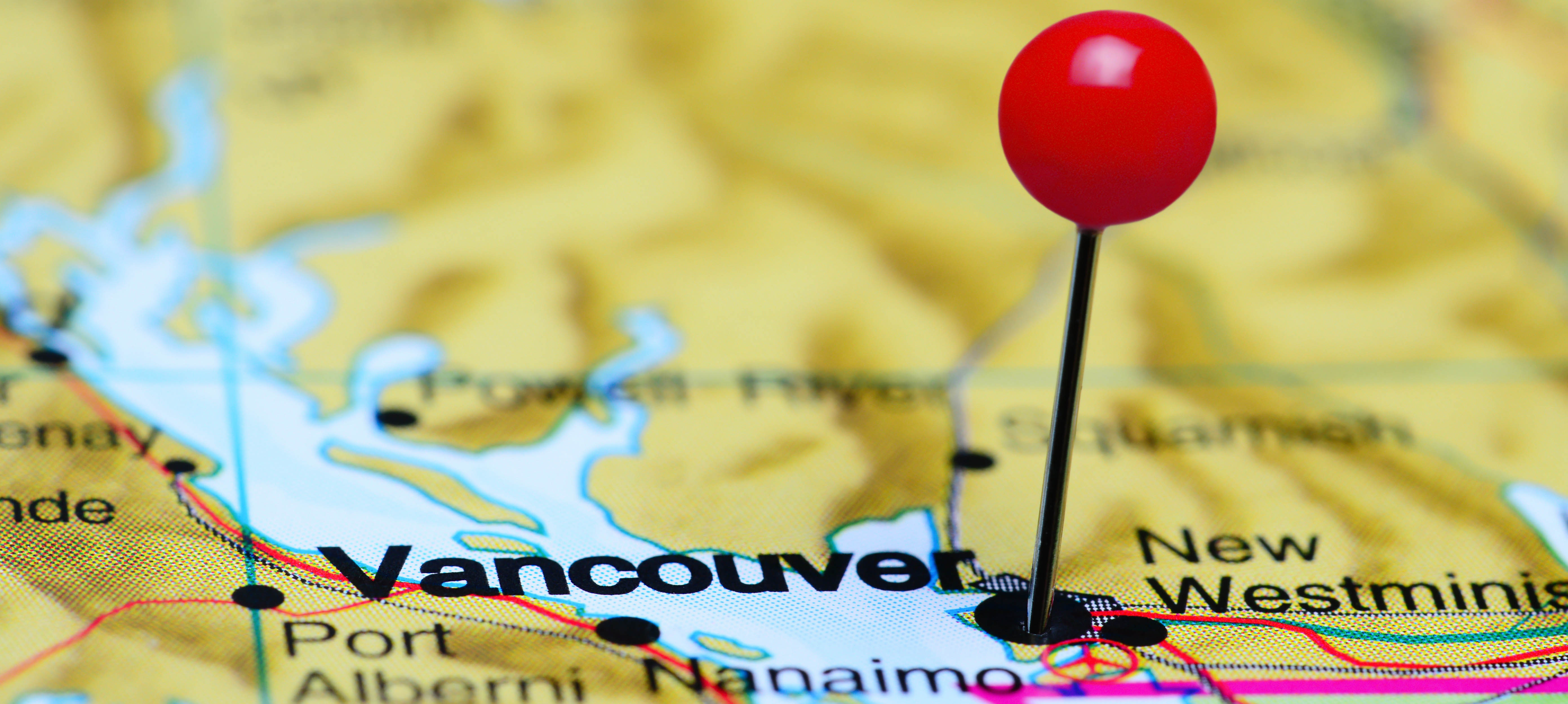 Vancouver pinned on a map of Canada